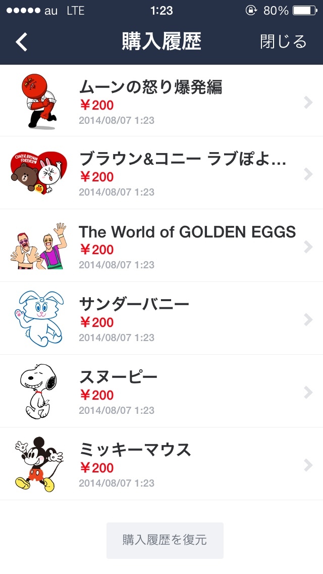 復元><♡ miki Diary 作成日: 2014.8.7 good morning課金したLINEのスタンプは復元出来るとコメントを何件か頂き、、その通りにしたら戻ってきたーーー(((°Д°)))♡嬉しい皆様、、コメントありがとうございました><ムーンの怒り爆発昔よく使ってたw相当ストレスが溜まっていた時代に←笑今日も一日頑張ろう〜