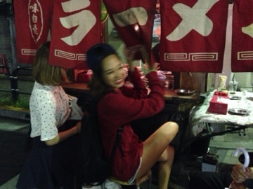 明美食べてみたかったの!屋台ラーメン!ふだんラーメンとか進んで食べへんけど、すぐのれんくぐったよね。笑