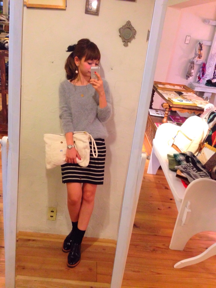 0928♡code miki Diary 作成日: 2014.9.29 昨日のcoordinateクラッチバックは、ariesに入荷したsnidelのやつーー(´౿`) コーデュロイの生地でLeeとコラボしている♡髪の毛は、一つにまとめた最近こればっか♡♡♡簡単だし、楽チン☆*:.。. o(≧▽≦)o .。.:*☆