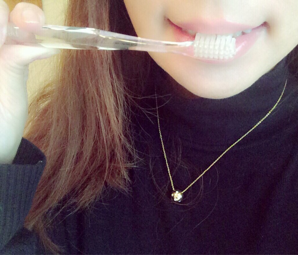 歯ブラシにパールホワイトのジェルを1〜2滴垂らして