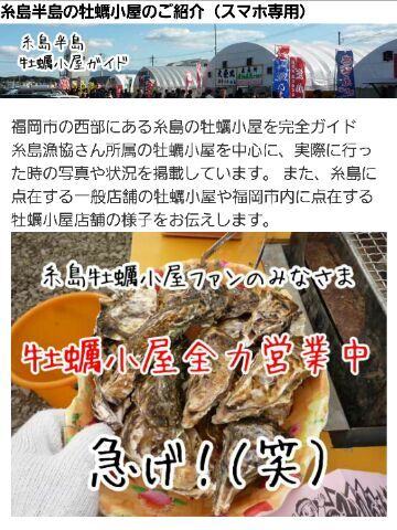 食べたーい!行きたーい! Takayo Diary 作成日: 2014.11.3 糸島の牡蠣小屋。。。行きたい!!食べたい!食べたい!テレビでもありよったもんなぁー美味しそう!(〃ω〃)絶対行こう((o(^∇^)o))