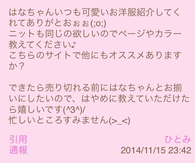 ロングヘア 野田華子(のだ はなこ) Diary 作成日: 2014.11.16 ストレートにすると髪が超伸びたのを実感。猫っ毛だからスプレーつけないとフヨフヨ。硬い毛質のストンとしたまとまりに憧れる(´;ω;`) 💓このブログにまとめてるのでみてみて下さい〜💓(*^^*)http://www.dclog.jp/en/8136133/549281778/10378440サイズのコメントももらったんですが、私は背が低いのでSか、SがなかったらMを買ってます(*^^*)