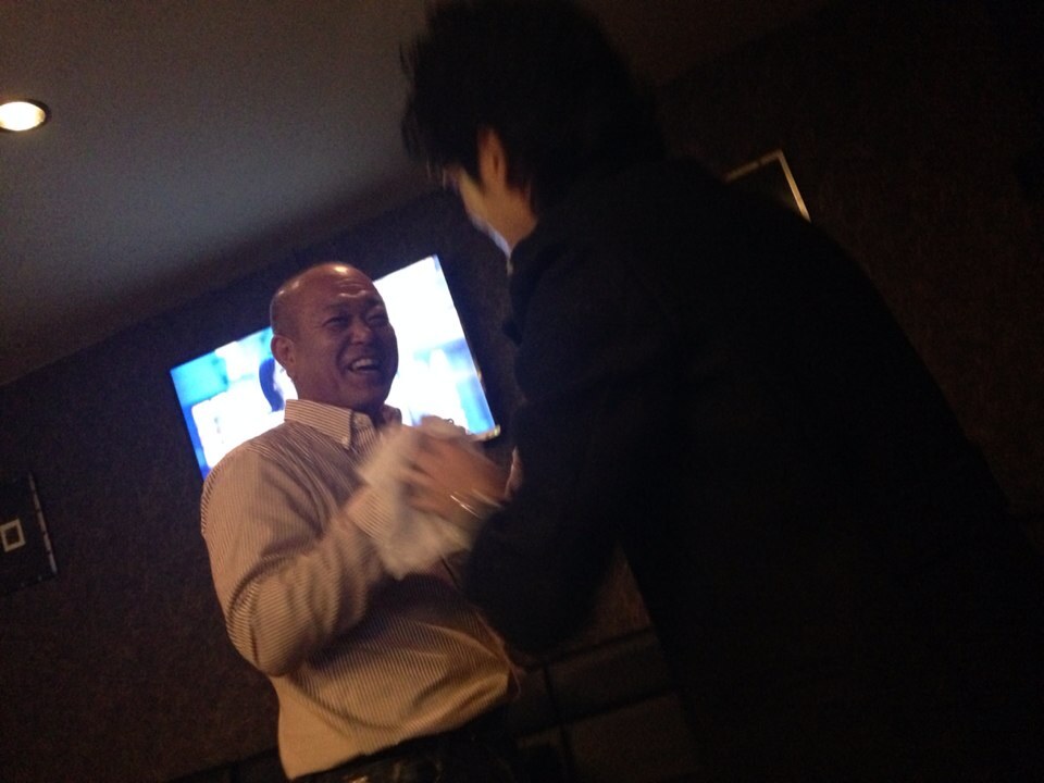 H&C6 AYA..E Diary 作成日: 2014.11.27 ラブショット祭りもぉ、ひいくんヘロヘロでギブアップ状態笑かーらーの顔面シュークリームやるって知っていたからGUCCIのクラッチバックわ避難させたもののコートわぬがせなかった笑そのまんまコートクリームまみれ笑でも、いいの楽しいから♡笑そして不意うちに顔面ケーキくらい全てたべたひいアダルトメンバー♡ ♡ ♡みーんなしゃちょさん!♡ビフォーこんなみんながたまらなくすき♡一時にミーでて三次会ー!!!つづく