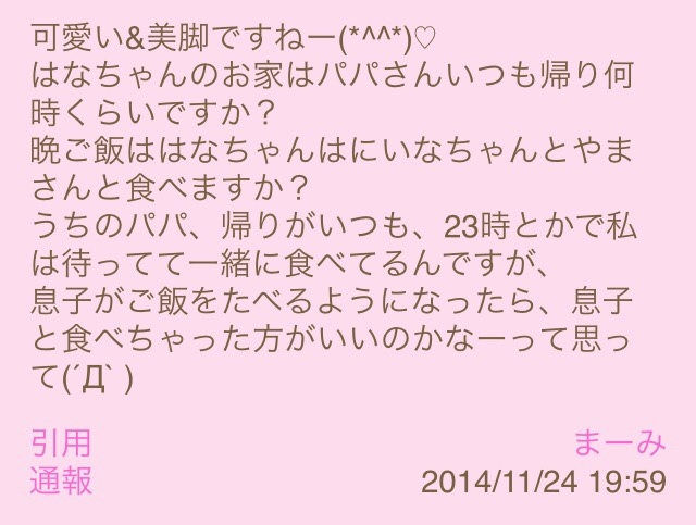パパが帰宅してごはん食べてる時はパパが1人ごはんでも寂しくないようになるべく前の席に座って話しをしてます。