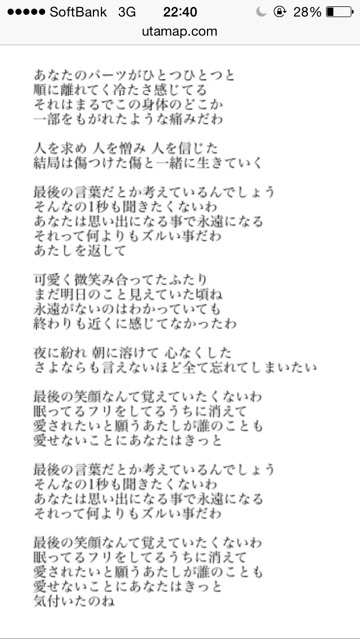 あゆ。 hitomi Diary 作成日: 2014.12.26 新曲良かった〜なんか今日の夢といい色々思い出した あゆのらいぶ行きたいやっぱあゆの言葉がすき _( ´ ω `_)⌒)_ あなたは思い出になることで永遠になる それって何よりもずるい事だわ 愛されたいと願うあたしが誰のことも愛せないことにあなたはきっと気づいたのね