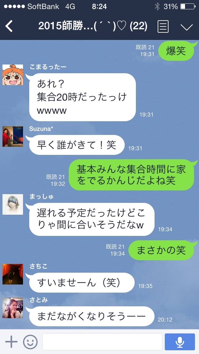 みんな家に迎えに行っても連絡つかなくてでてこないってゆーね笑