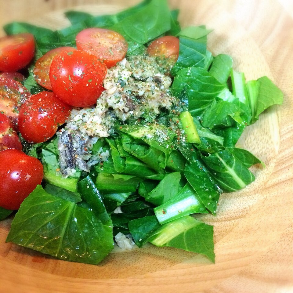 今日の小松菜サラダは、アンチョビを入れてみたよ〜😊