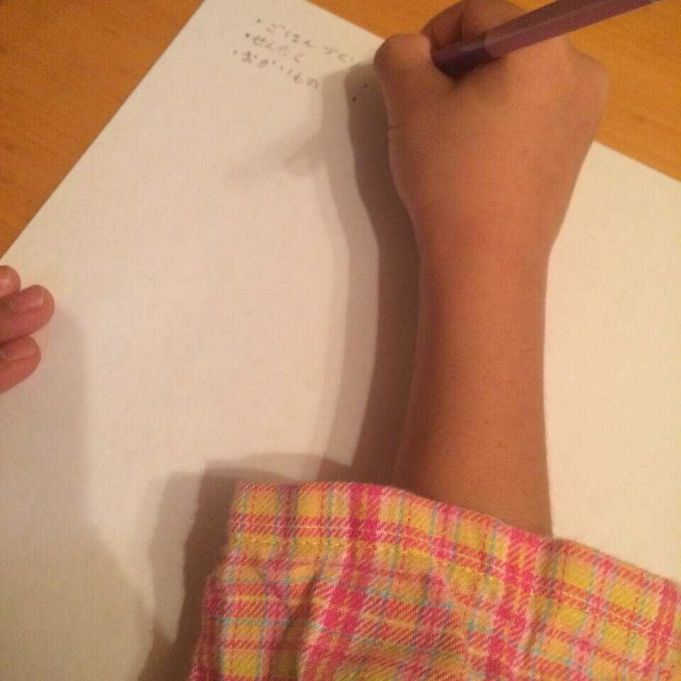 じゃあにいな、今からどうやったら家の仕事をすぐ(効率的に)できるか紙に書こう!!」