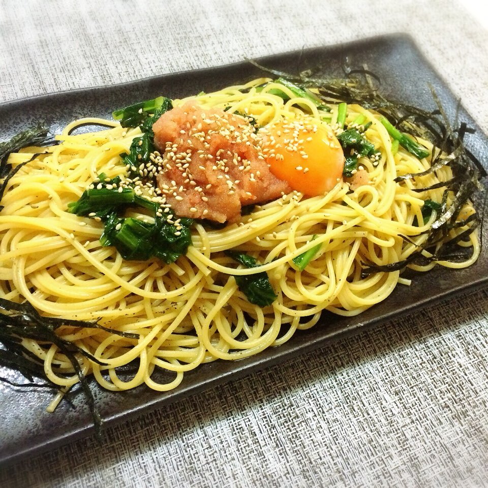 明太子…卵…(私のサラダ用の泣)小松菜…