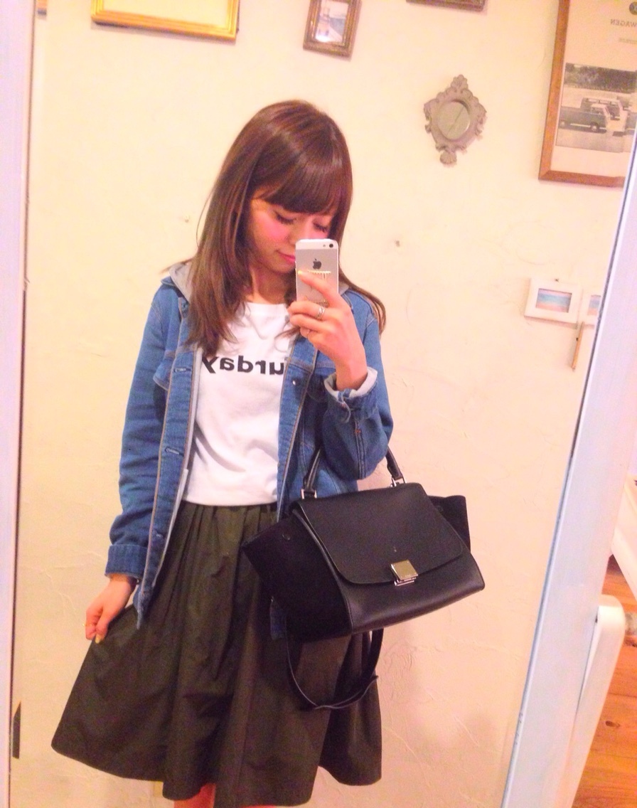 0321♡code miki Diary 作成日: 2015.3.21 毎日お風呂に入る〜髪の毛乾かすまで、2時間はかかる・・今日は、テキパキ動いてもぅお風呂から出て髪の毛乾かしたぁ♡♡♡今日のcoordinate久しぶりにカーキのスカート履いたっGジャンは、スウェット生地でフードが付いてて取り外しも出来るやつ(´౿`) よし、明日の朝のお米セットしよう〜動きたくなーーいっ