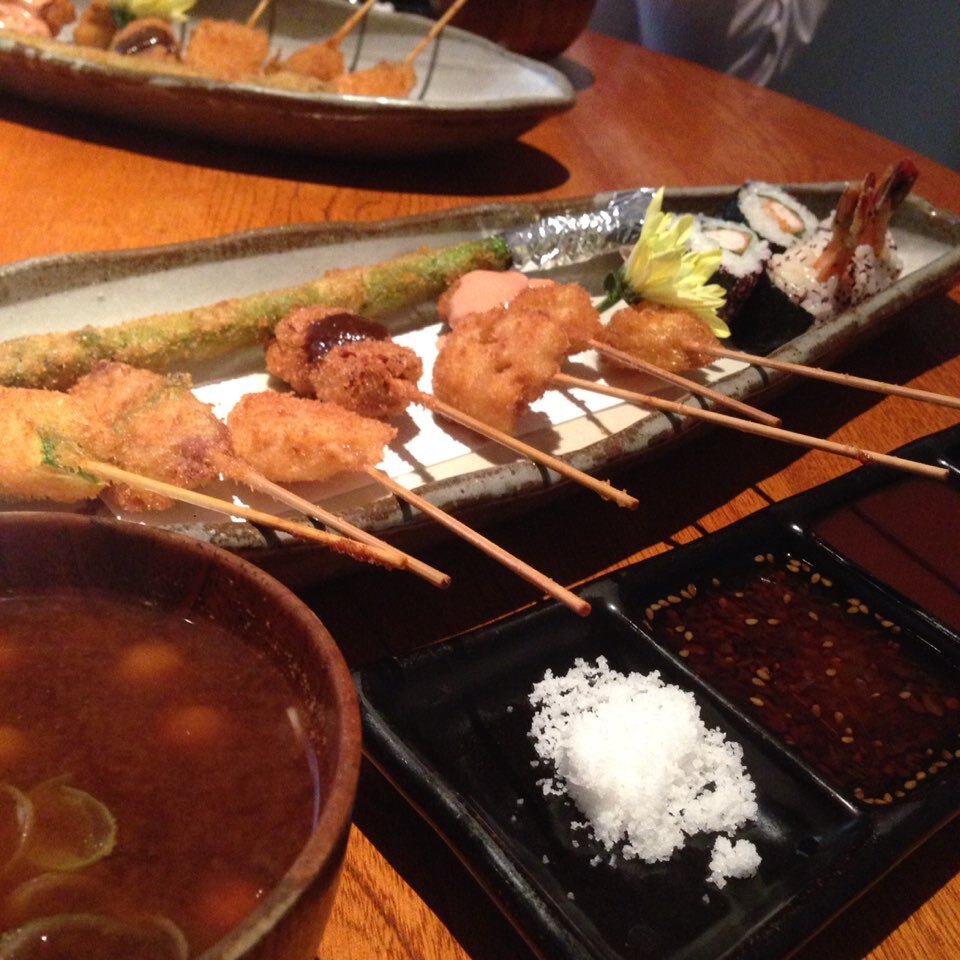 串カツ miki Diary 作成日: 2015.4.5 good morning朝から洗濯機、フル稼働!今日は、2週間以上ぶりに一日予定なく家でゆっくりお掃除とかする日〜♡♡幸昨日は、ずっと行ってみたかった串カツ屋さんでlunch絵梨奈が予約してくれてたおかげでスムーズに入店できたよ(´౿`) どれもこれも、美味しかったぁぁぁ><アスパラガスが肉厚すぎて、、涙フランス岩塩?に付けて美味しさ噛み締めた!♡♡また絶対行こうね