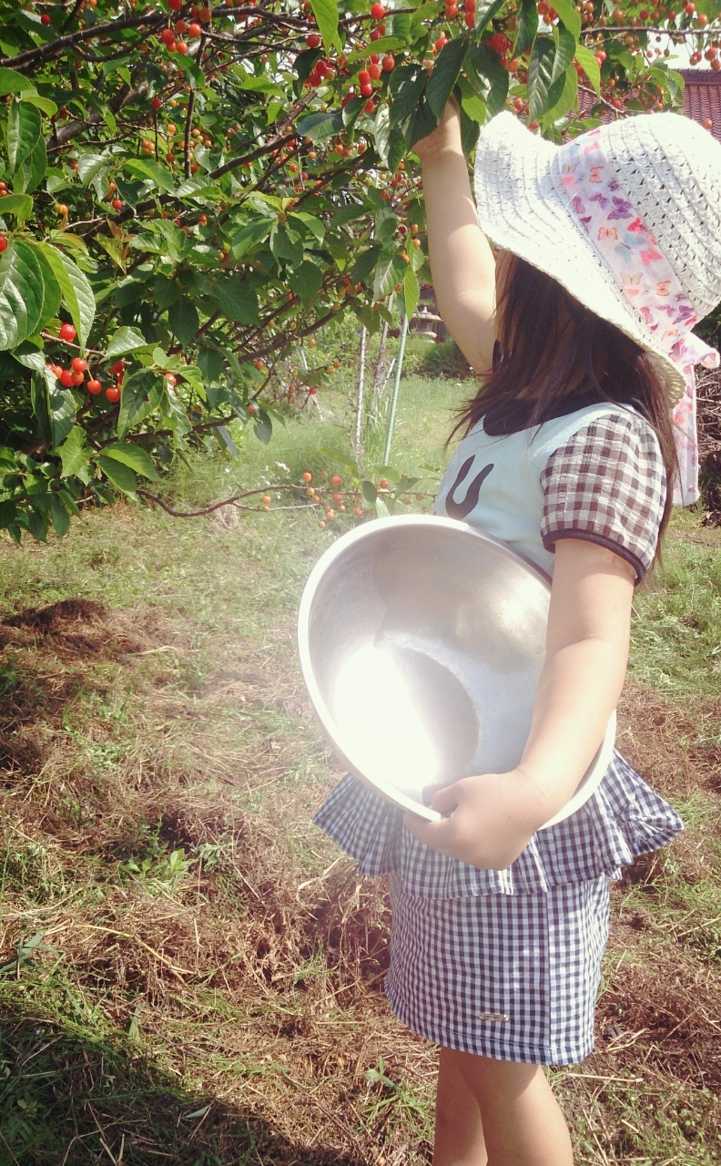 さくらんぼ採りして食べて、今は藤まつりに来たよ♡
