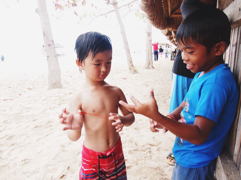 輪ゴムであやとりを教えてもらってるところ😊