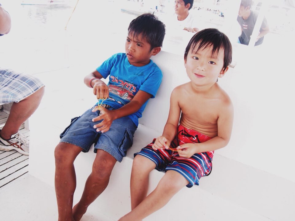 船のスタッフさんの中にお手伝いかな?れおと同い年くらいの子もいて、