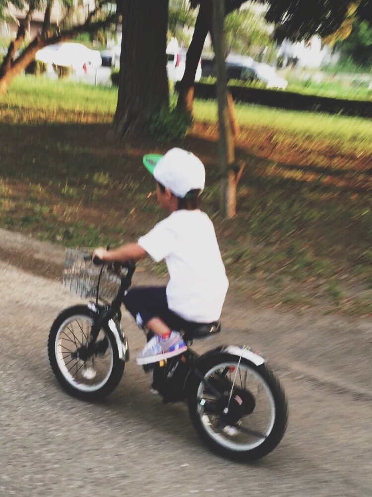 家の前とかだと距離短いからつまらないのか自転車放置してたのに、公園の一本道の長距離を自転車で走らせたらなかなかの上達!