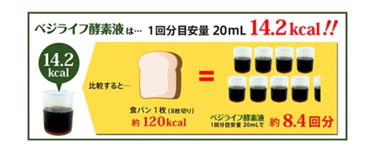 ベジライフ酵素液は1回あたり約14.2カロリー。