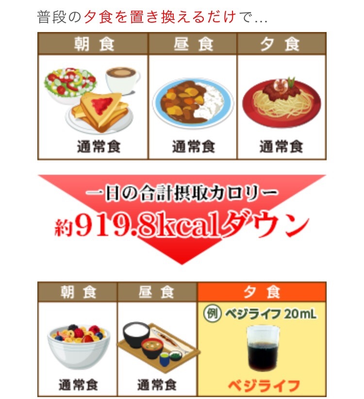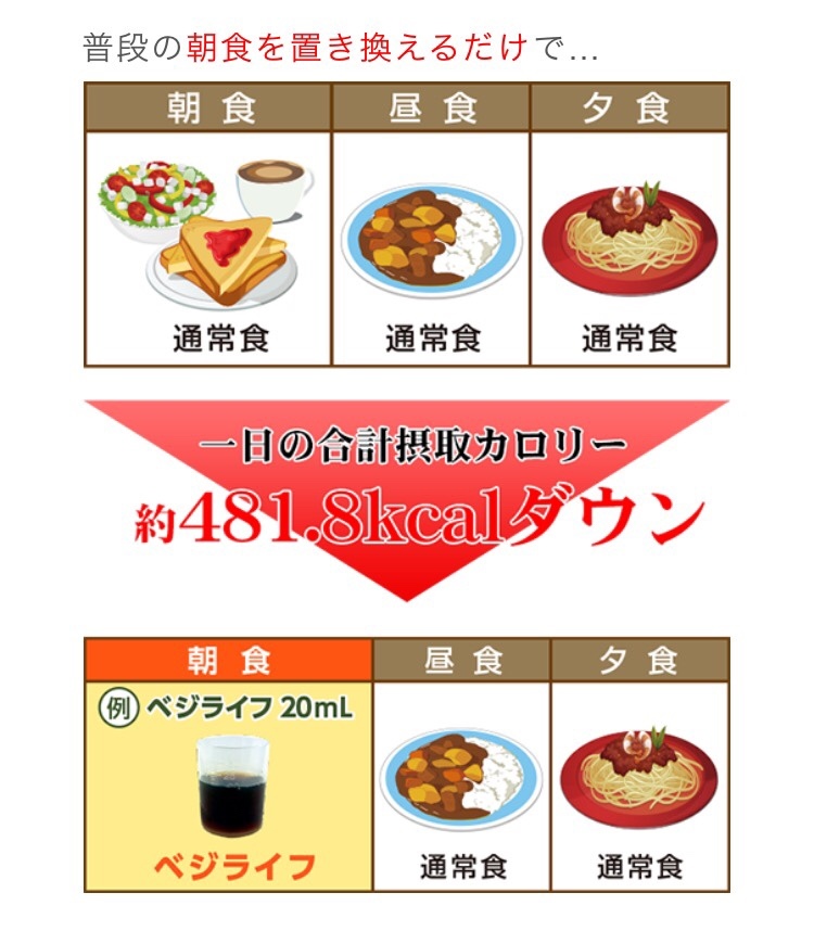 朝昼晩の食事の中の1食をベジライフ酵素液に置き換える方法がいいよ!