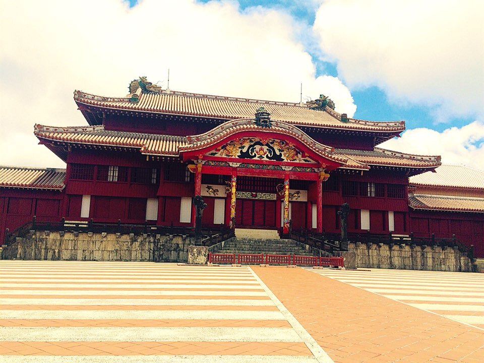 少し長めの石段を汗だくで登った先に鮮やかな首里城が