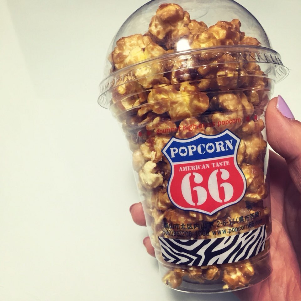昨日買ったポップコーン片手に