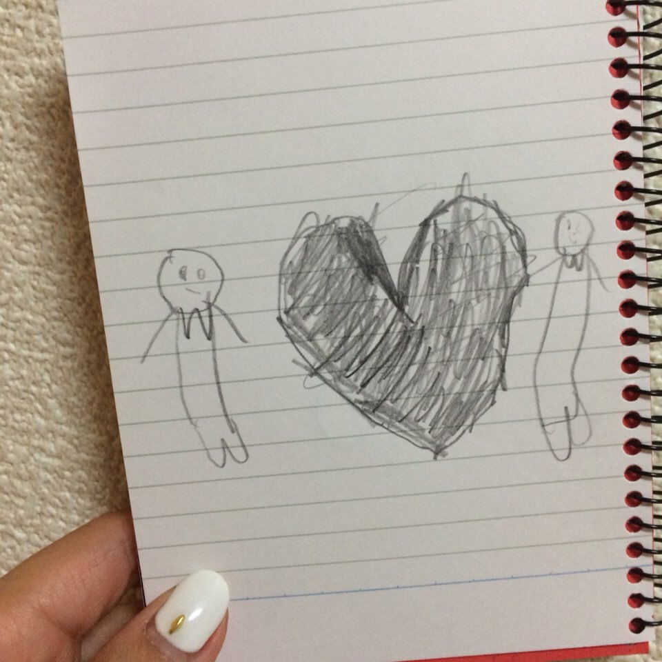 大和の絵の秘密。 野田華子(のだ はなこ) Diary 作成日: 2015.5.31 大和「みてみて〜」私「かわいいー!w」大和「パパとママのラブラブ」…ブログをずっとみてくれてる人は覚えてる方もいるだろうか大和が人を描く時に時折描かれてるこれ。おっぱい?えり?色々な憶測をしてたんだけど思い切って聞いてみた←私「ねぇねぇ前から描いてるこの首のところの何?」大和「これは…首にブッ刺さってる何か。」えっ?予想外です←なにそれ怖いwwwラブラブな絵のほっこり感一気に吹き飛んだわ。首にブッ刺さってる何かって何!何!!!笑