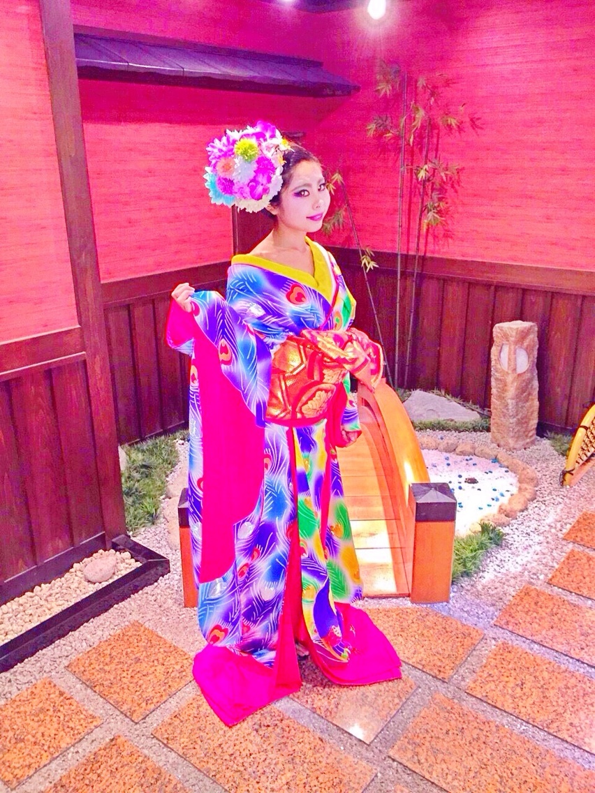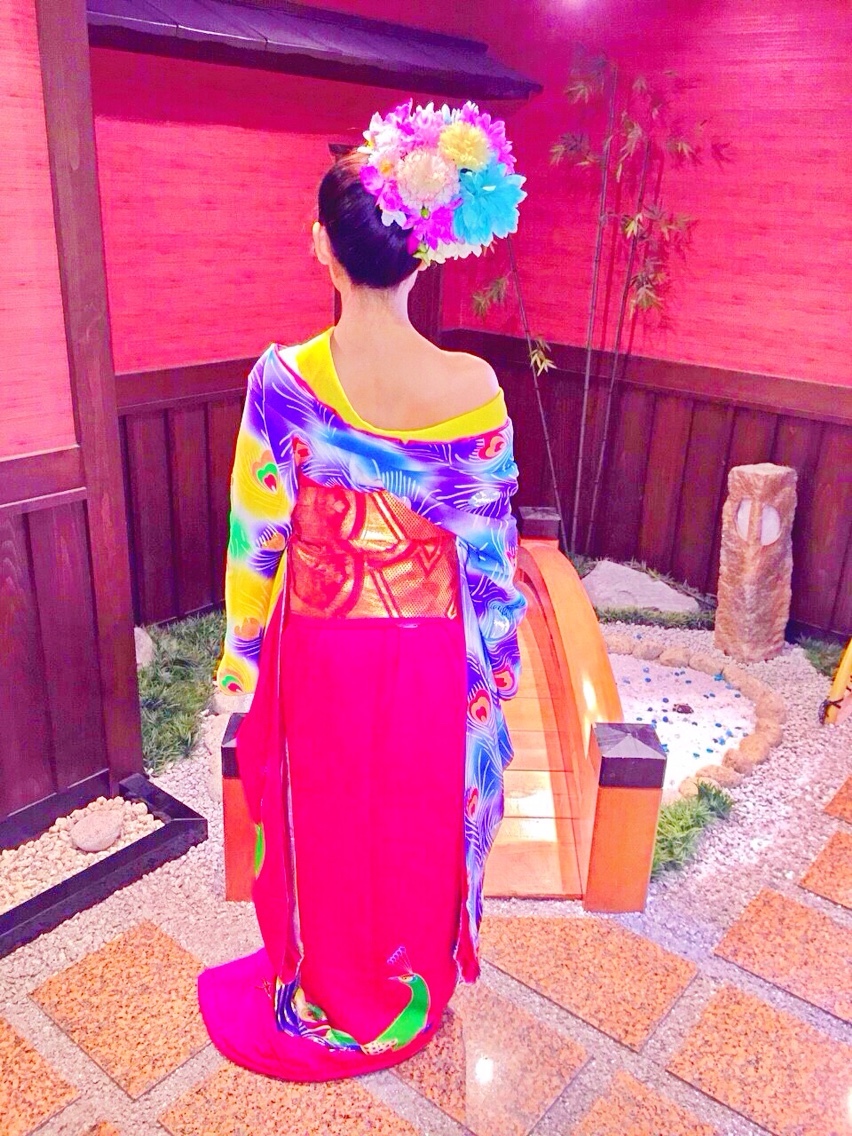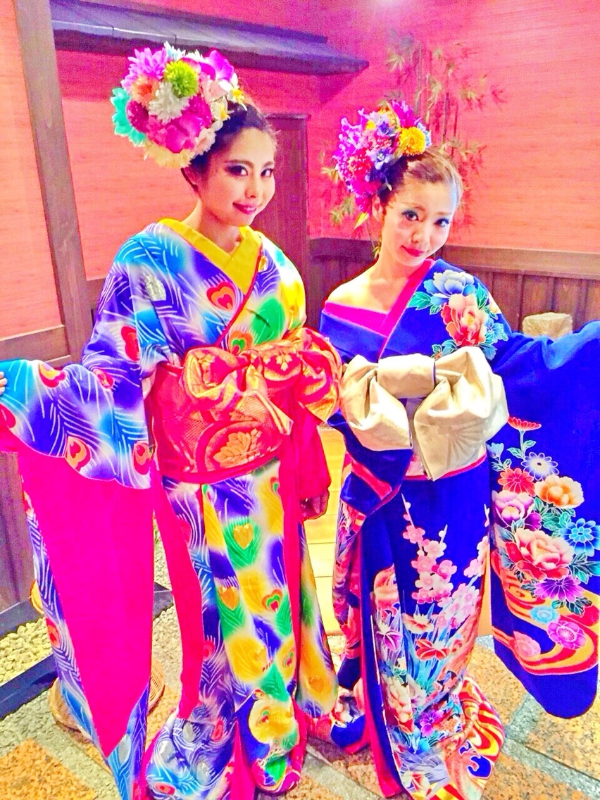 京都〜花魁〜2 AYA..E Diary 作成日: 2015.6.9 皆の撮影待ってる時に自分たちも写メ〜かおりとあやわいっつも髪飾りつける方一緒だから立ち位置も決まってる流石小学校からの中着物もこれ選んで正解だったね!💡💕クジャク柄が派手でめっちゃかわいーっ😍❤️あやっぽい!笑んで、いざ撮影ーっ❤️📷