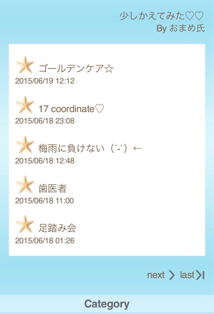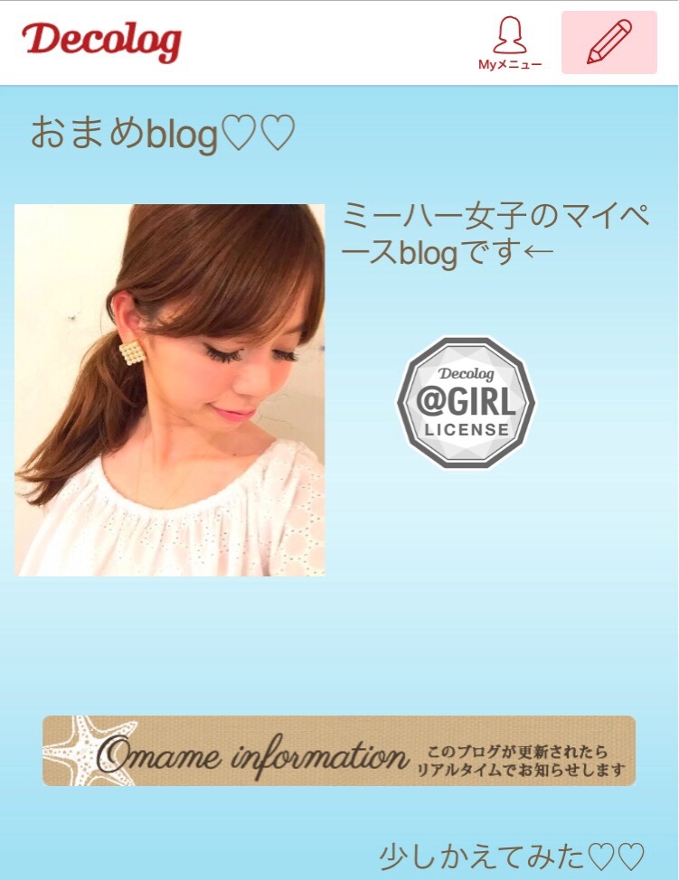 change🐳 miki Diary 作成日: 2015.6.19 blogのtopを可愛いの作ってもらえてチェンジしたよーーーん🌴♡ぴぇーーーーーーん可愛すぎ←海のようなグラデーションカラーの背景にアイコンはスターフィッシュ夏ーーー🌴♡もぅ一回言う!←可愛すぎる!!!!♡こんな私のブログ・・初めてからら、10億2千万hitしてた見てくれてる方、、、ありがとうございます涙これからも、マイペースに綴っていこう