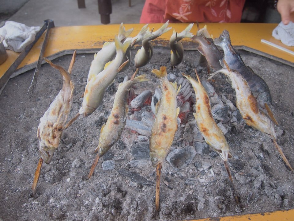 ピリ辛こんにゃくと、魚2本、サービスでくれたの💕