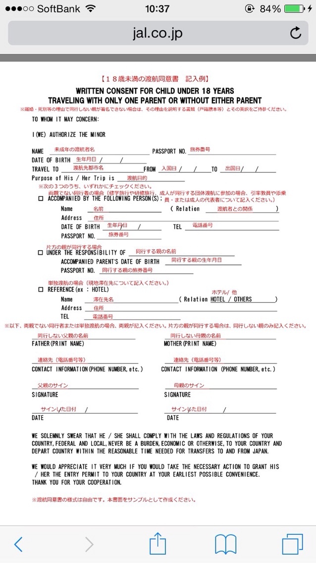 自分で”渡米に許可する”的な文章を直筆サイン付きの英文で書けばいいって大使館に言われたけど、