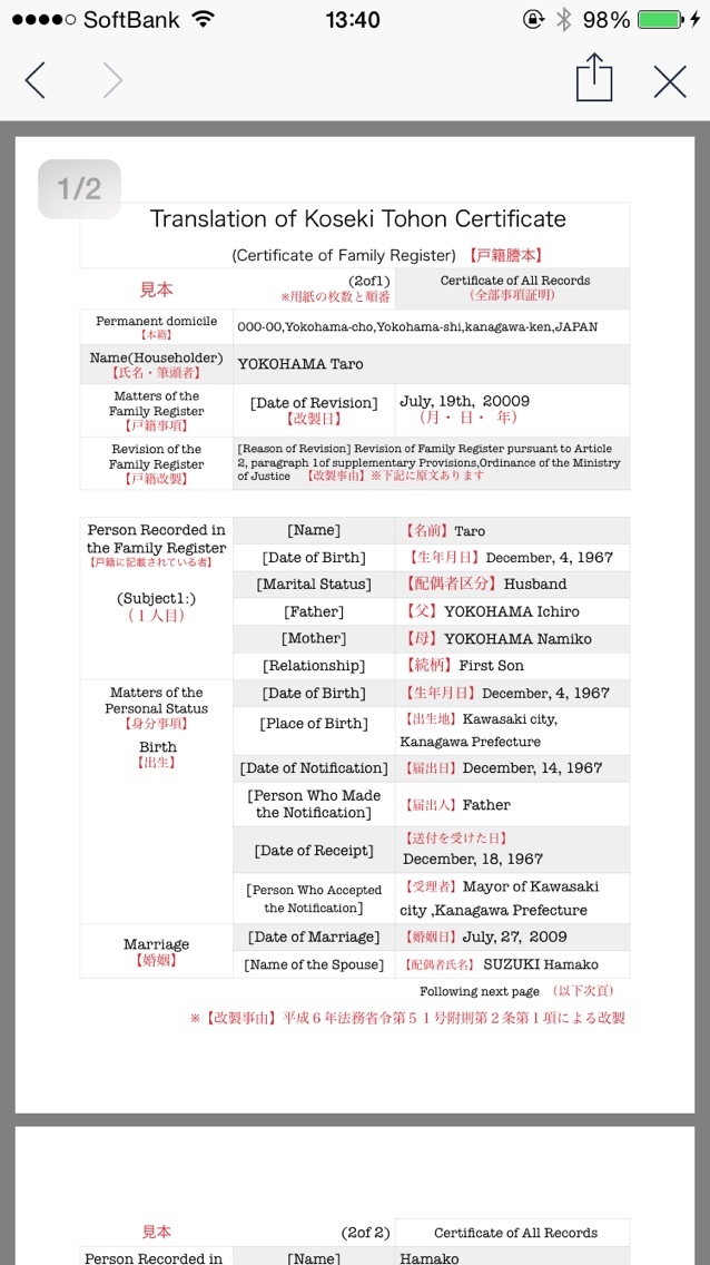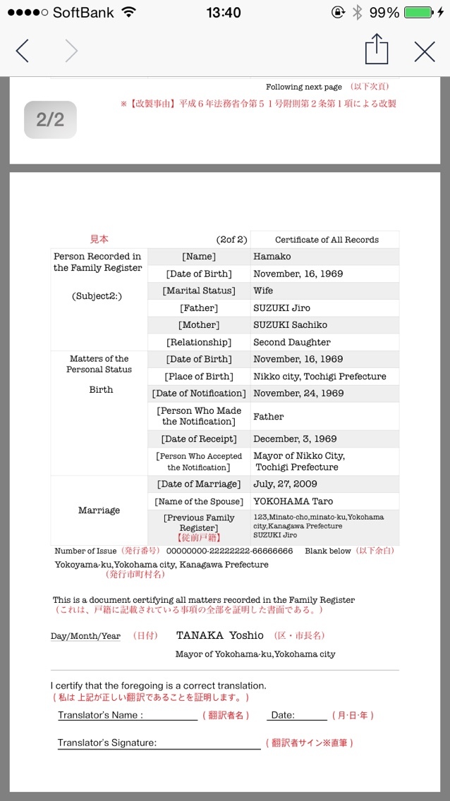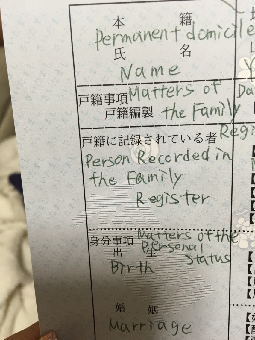 これは区役所で戸籍謄本をもらって、自分で英訳したよ!