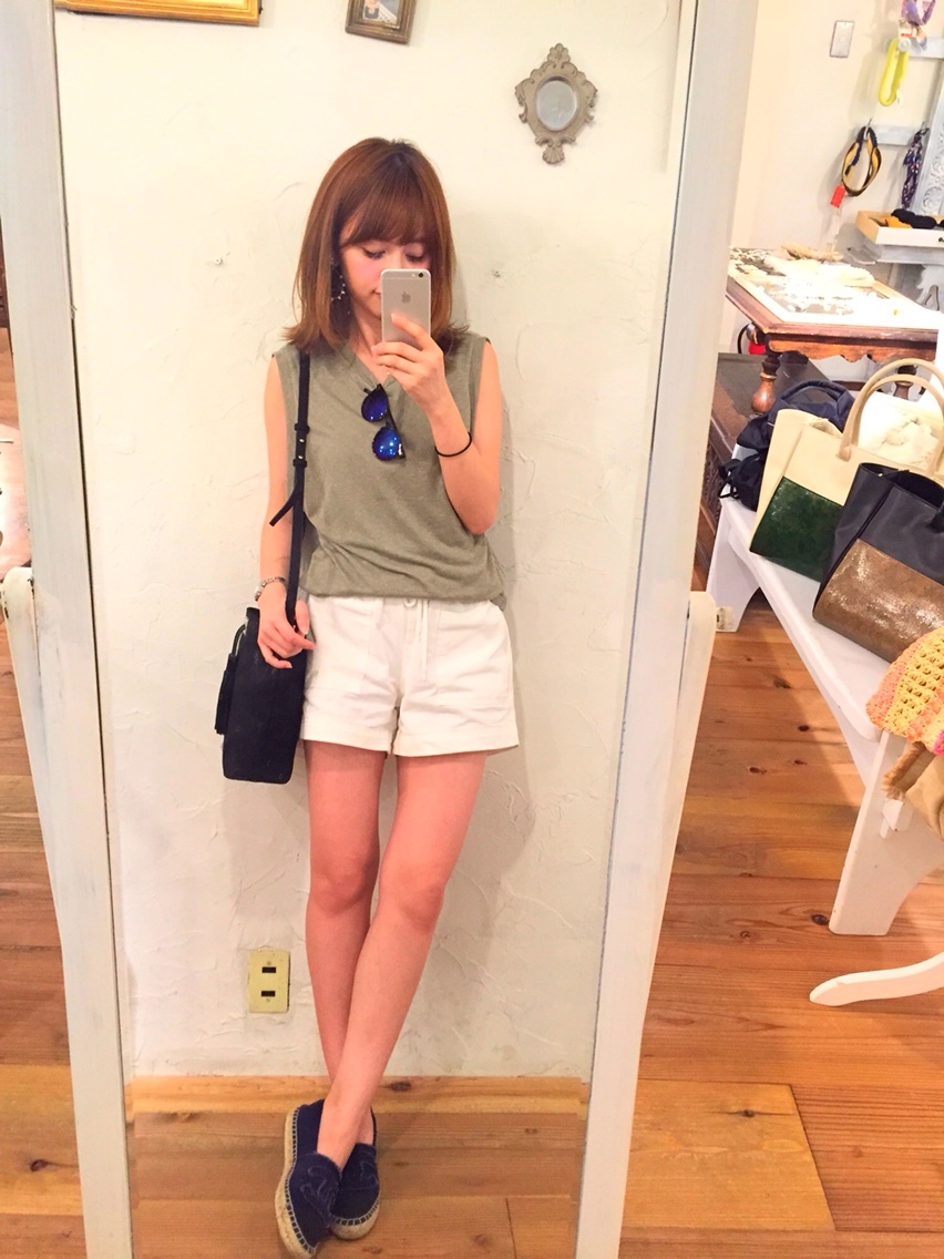 20 coordinate♡ miki Diary 作成日: 2015.7.20 一昨日から喉が痛くて今日から謎の咳にかわった>_<赤木さんがイケメン風に心配してくるからキュンとしてしまったw爆のんちゃんさん、ゆりちゃんさんがベーグルを差し入れしてくれたぁ>_<私と赤木さん、ブルーベリーのベーグル大好物で興奮ありがとうございました>_<♡♡また、オタク話しましょう〜今日のcoordinate本日もカーキday多分明日もカーキを着る気がする←変な咳よ、、止まっておくれ😞