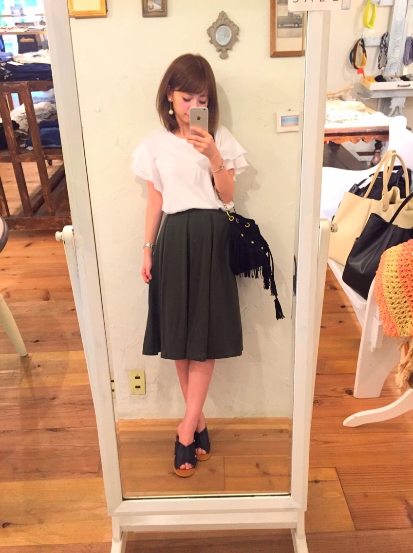 denim履いてたけど、途中でポンチフレアSKが再入荷してきたから着替えちゃった♡←
