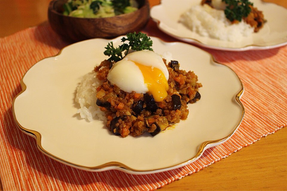 もう本当10分くらいでキーマカレーとキャベツと小松菜の蒸し野菜が完成。