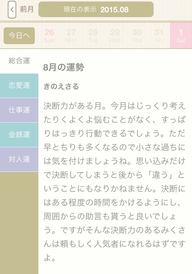 まずは毎月恒例の今月の運勢