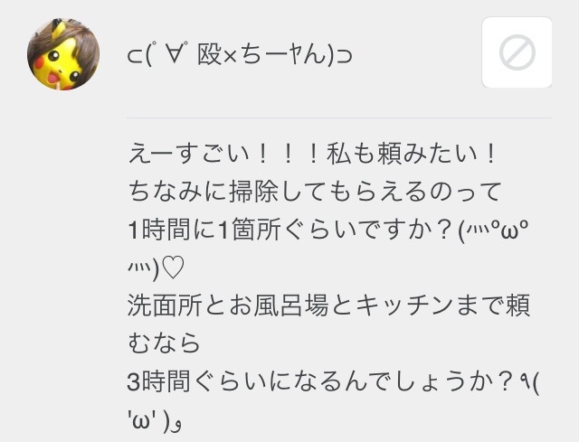 広さや汚れ具合にもよると思いますが、大体3時間で2.3箇所はやってもらえると思います(*^^*)💜