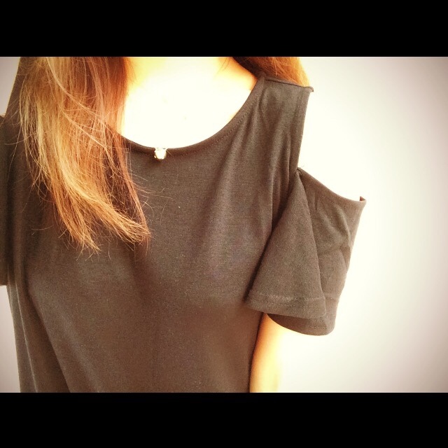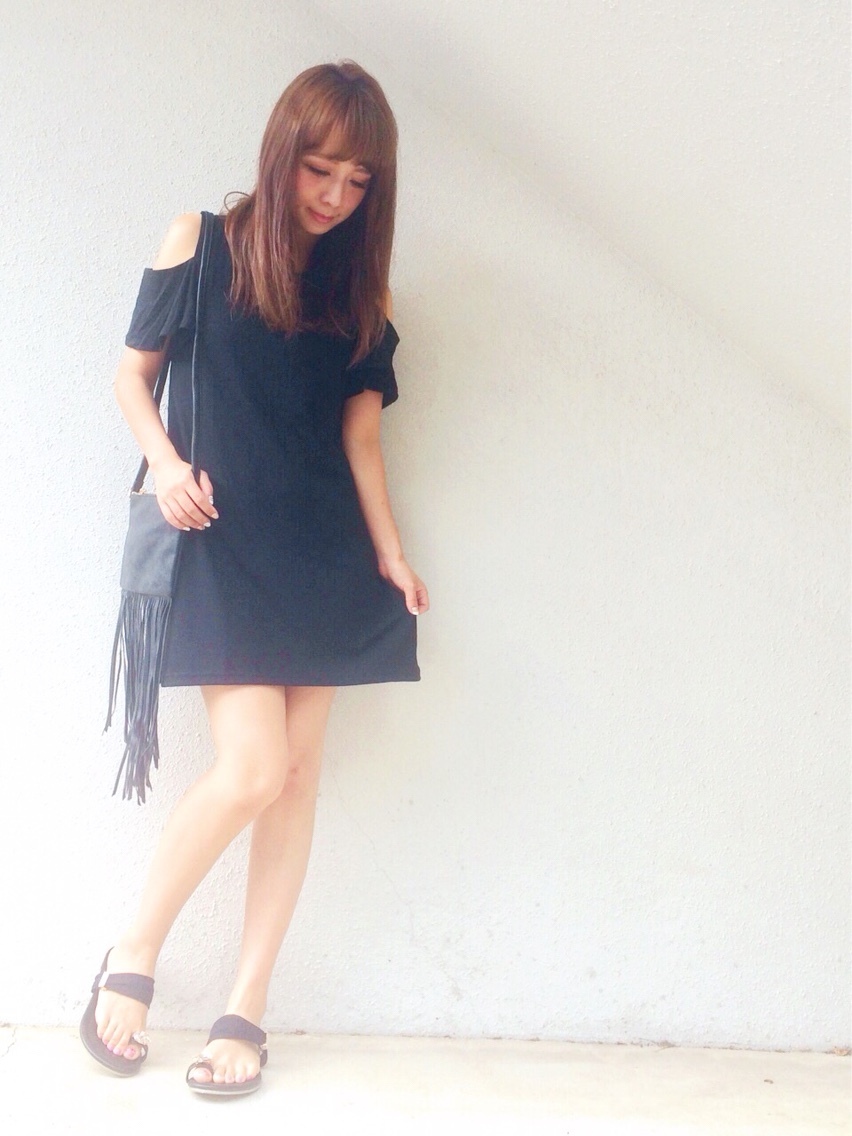 →オープンショルダーフリルワンピース←