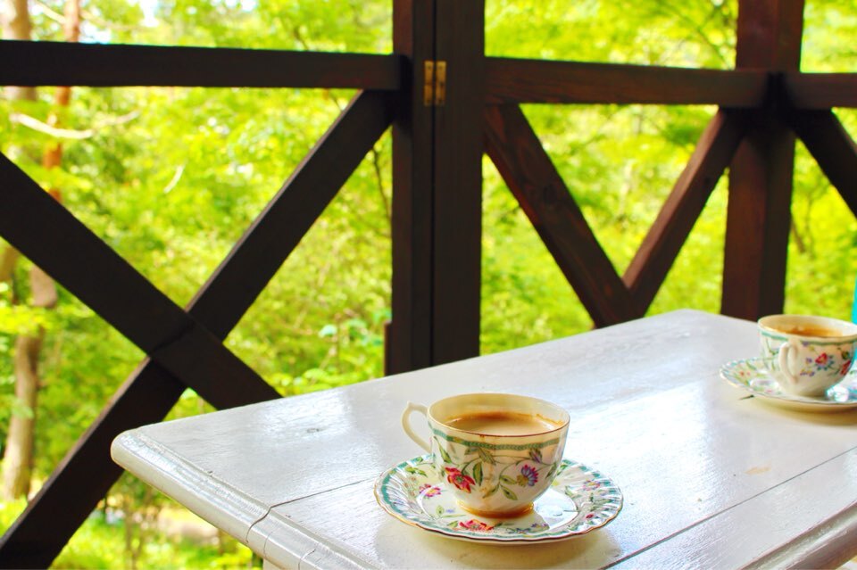 緑の中で飲むコーヒーや紅茶って何でこんな美味しいんだろ〜