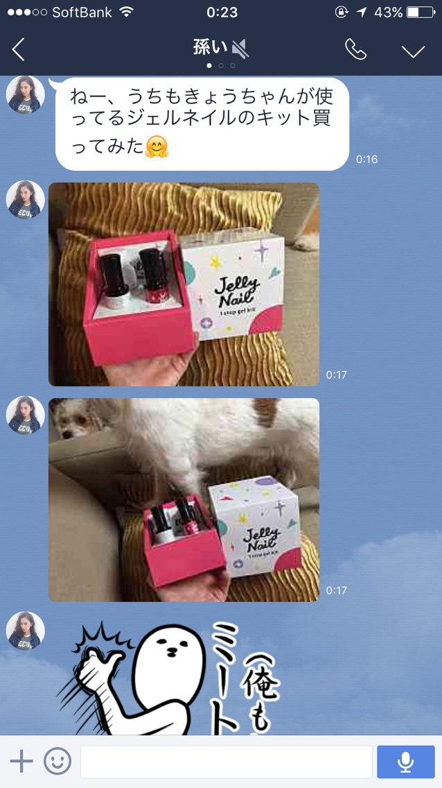 簡単ジェルネイルのジェリーネイルのセットをいーちゃんも買ってた!笑