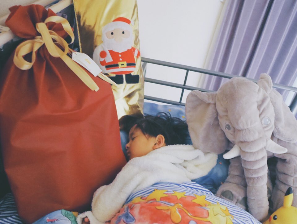 置いたらすぐ、プレゼント側に大きい寝返りしててさらにヒヤヒヤ。。笑