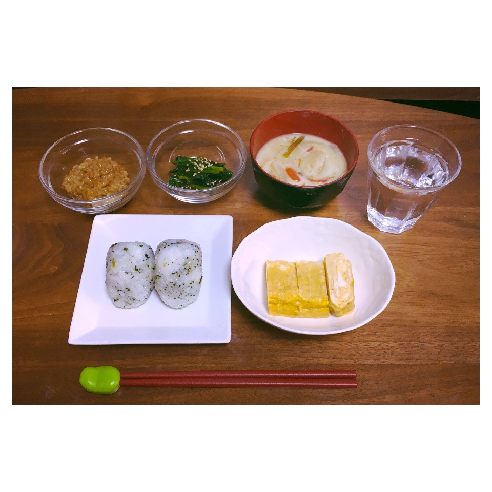 冷蔵庫の残り物で🍉 miku Diary 作成日: 2016.1.2 残り物たちで作った朝昼兼用ごはん🍳お雑煮(餅無し)ほうれん草のおひたしだし巻き卵納豆おにぎり🍙簡単ごはんでした🐰🍉おにぎりの海苔があると思ってたけど無かった💭大根おろししようと思って大根切ったけどすりおろし器が見当たらなかった💭ボケはじめたかしら?😯💭🗣お米が無くなったぁぁ
