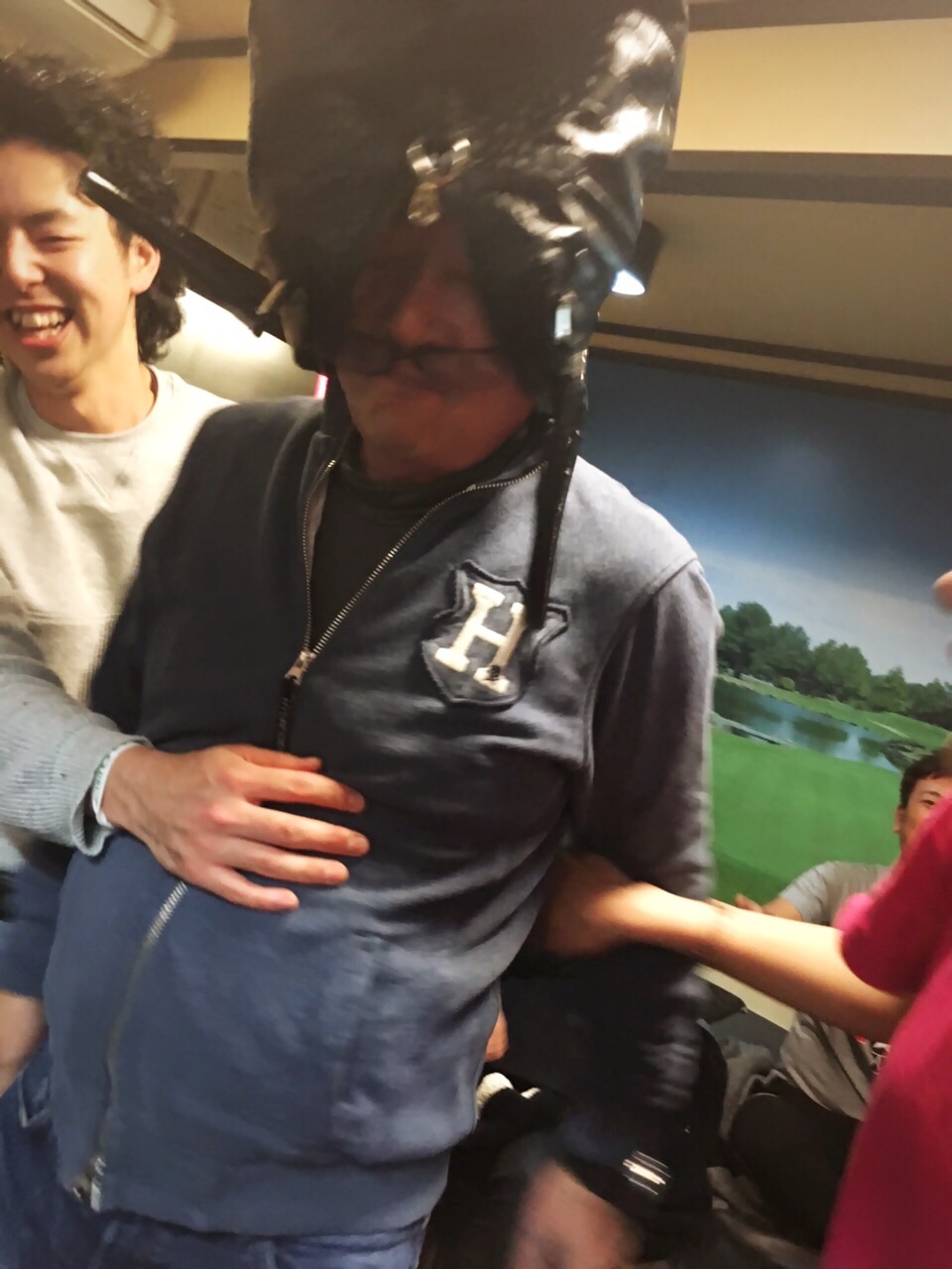 外でするか二階のトイレまで上がるか(でもよっぱらってるから上がれない)
