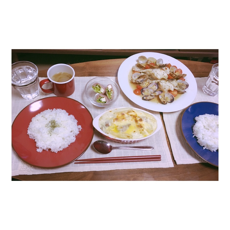 彼が帰宅したので豪華に🍾 miku Diary 作成日: 2016.1.15 今日は彼が帰ってくる日なので少し豪華に🍾鱈のアクアパッツァマカロニグラタン生春巻きオニオンスープでした💗アクアパッツァがおいしすぎた😝💞彼が帰って来るの遅すぎてお腹ペコペコだったょ🙄今回はしっかりお土産買ってきてくれました😊👏🏻ありがとう💗💗💗はあ〜〜〜やっと帰ってきたぁ〜〜💏