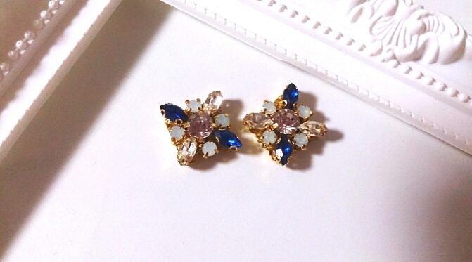 ブルー、クリア、ホワイトオパールのストーンでつくったピアスです♡