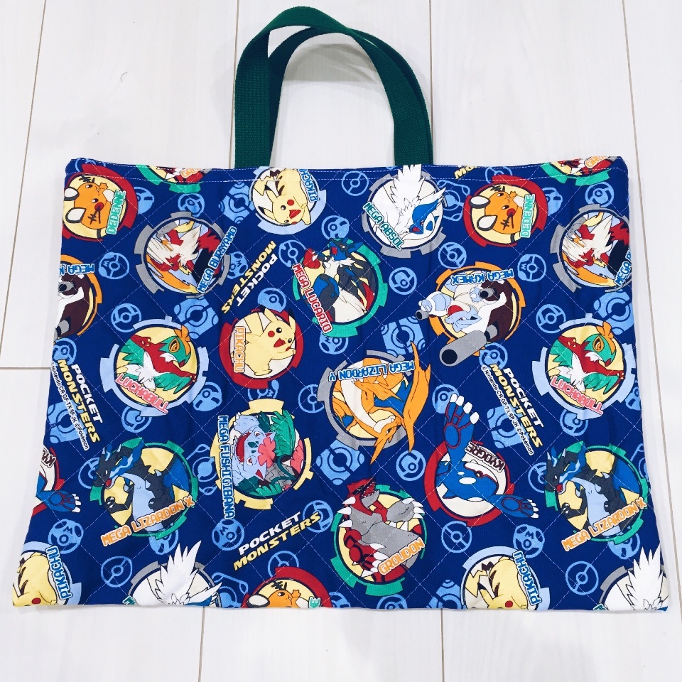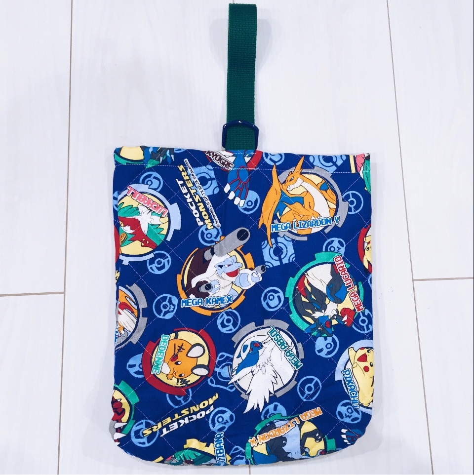 レッスンバック、体操着袋、上履き袋がポケモンのキルト生地で。