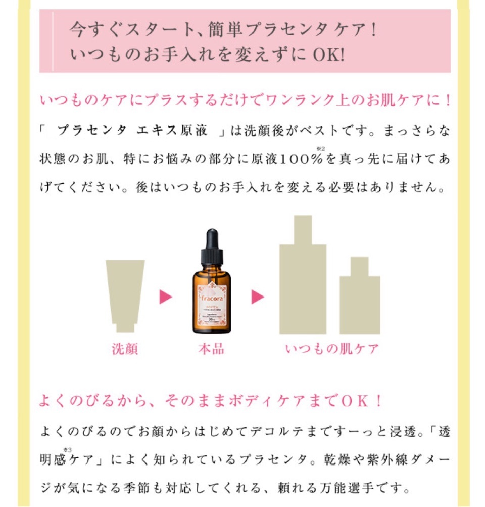 プラセンタは分子が小さいので直接お肌に浸透してお肌の奥深くまで保湿してくれるので