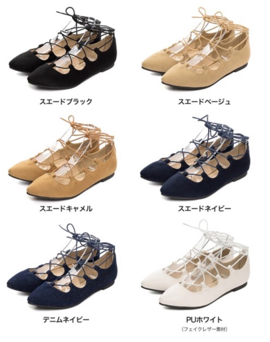 レースアップフラットソールパンプス