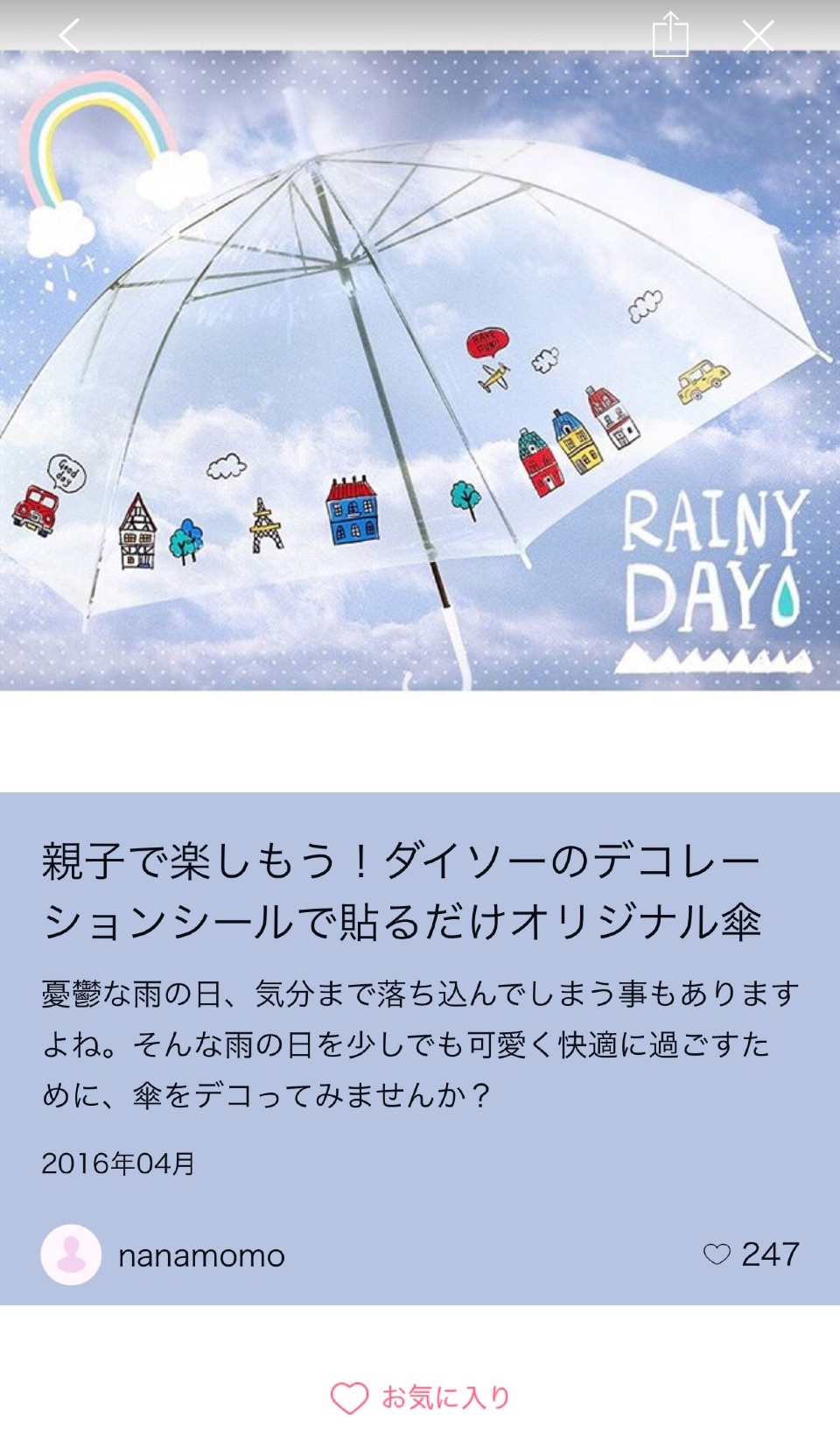ただの100均のビニール傘もオシャレなオリジナル傘に😍