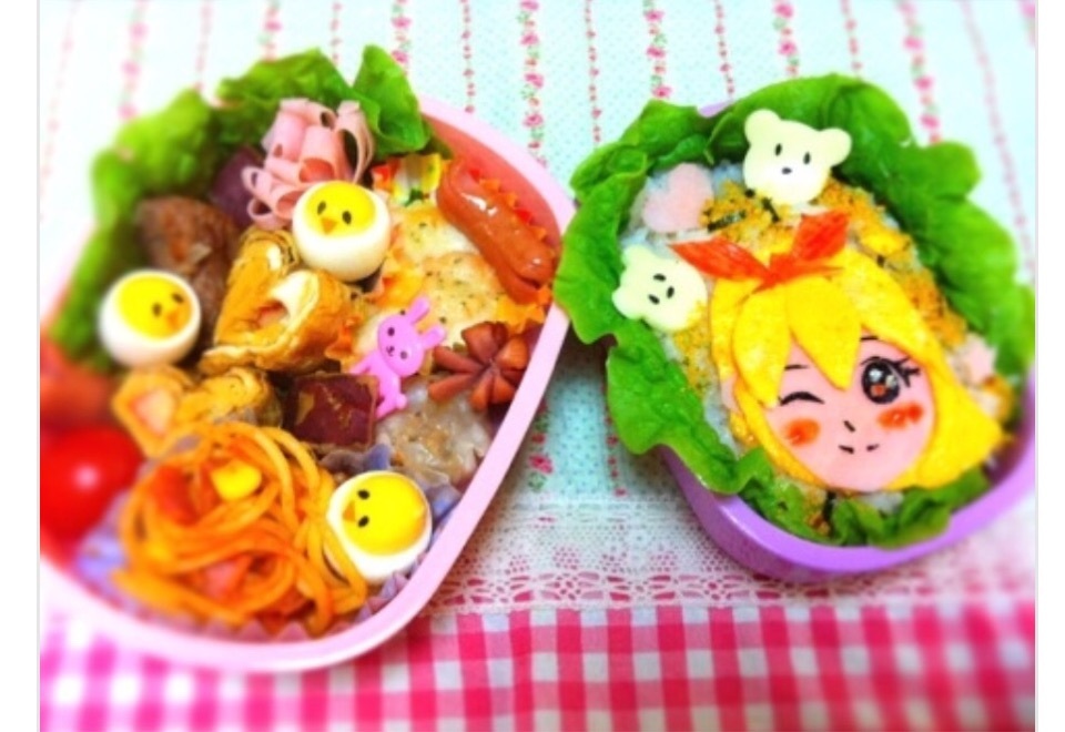 ディフォルメ化した似顔絵お弁当。