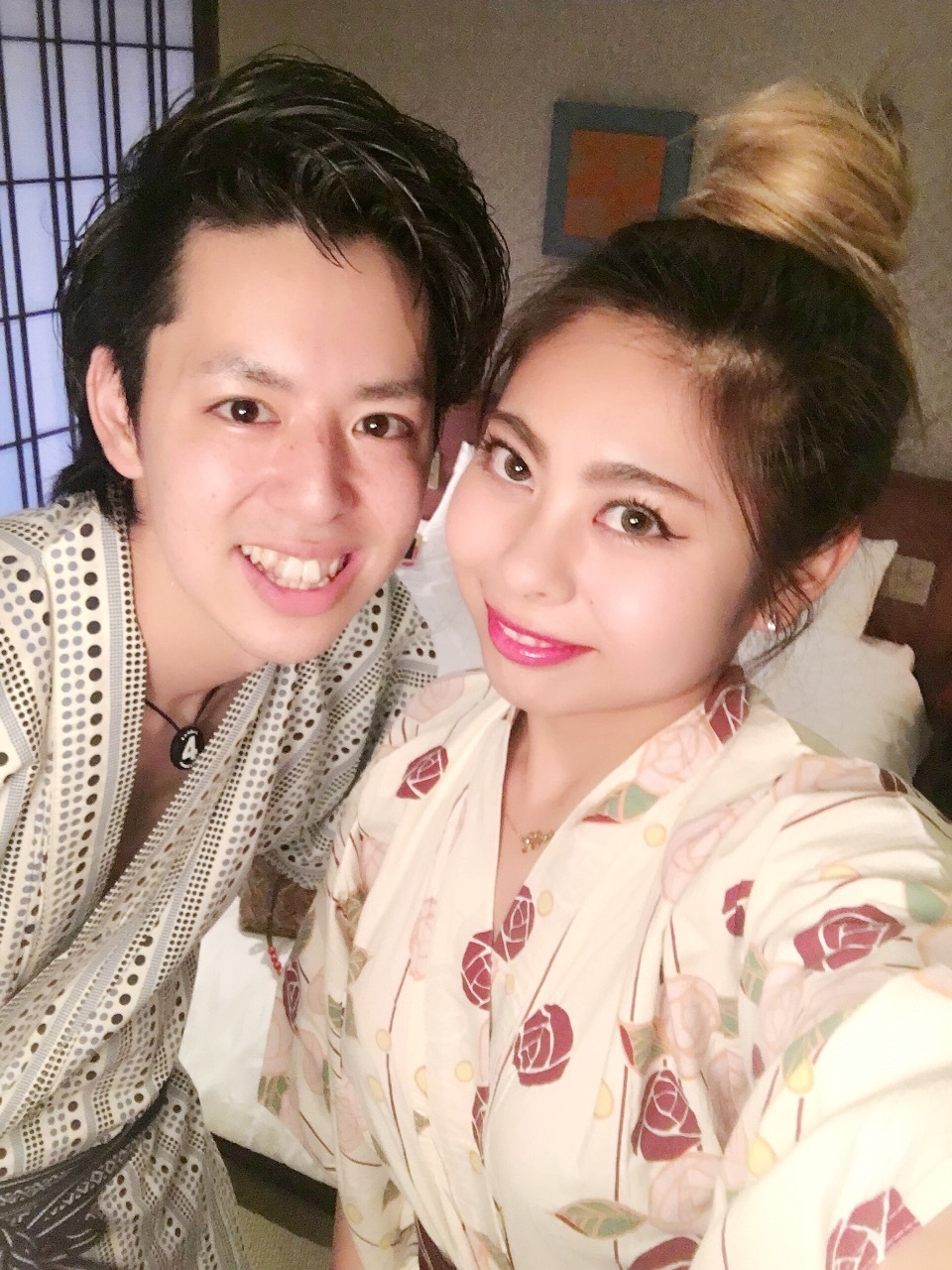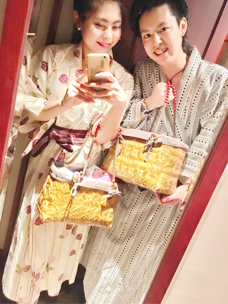 京都Trip♨️浴衣couple AYA..E Diary 作成日: 2016.4.30 旅館が無料でかしてくれるよ❤️浴衣うれしい〜〜❤️うちらわレンタルがいっぱいで、フロントでお願いして貰ったから、ただの紐だけど、旅館歩いてる人たちわちゃんと帯まであって、いろんなデザインに結んでかわいかったな〜〜\(^o^)/浴衣着たい人わ早くチェックインしたほうがいいかもね😊お風呂のセットもって混浴風呂にGo〜〜っ♨️❤️お風呂向かってるときに小腹がすいたらどーぞ❤️っていなり寿司がおいてあったちゃっかり食べた❤️wW