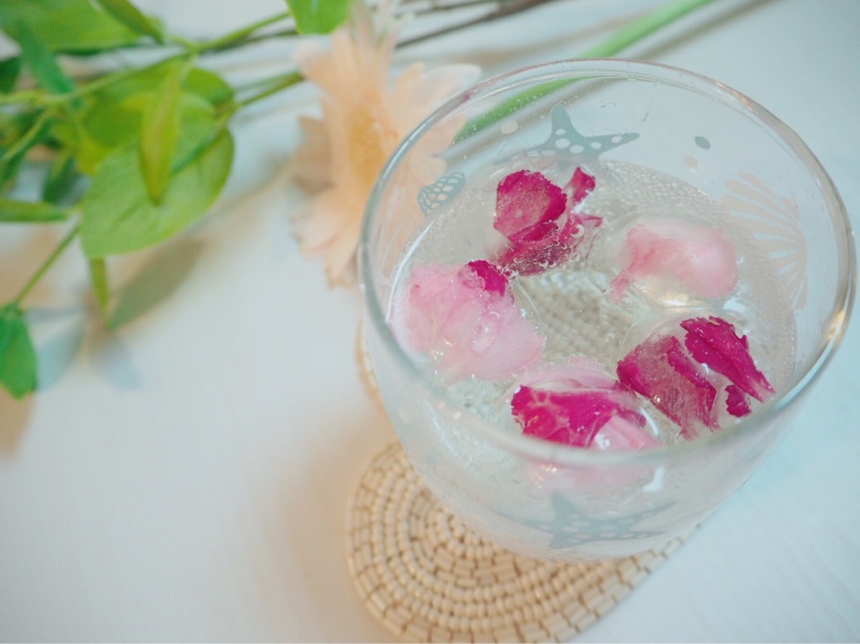 ホッと一息〜なんて時に普通の氷じゃなくてフラワーアイスで飲み物飲むだけで癒されそう😊💕