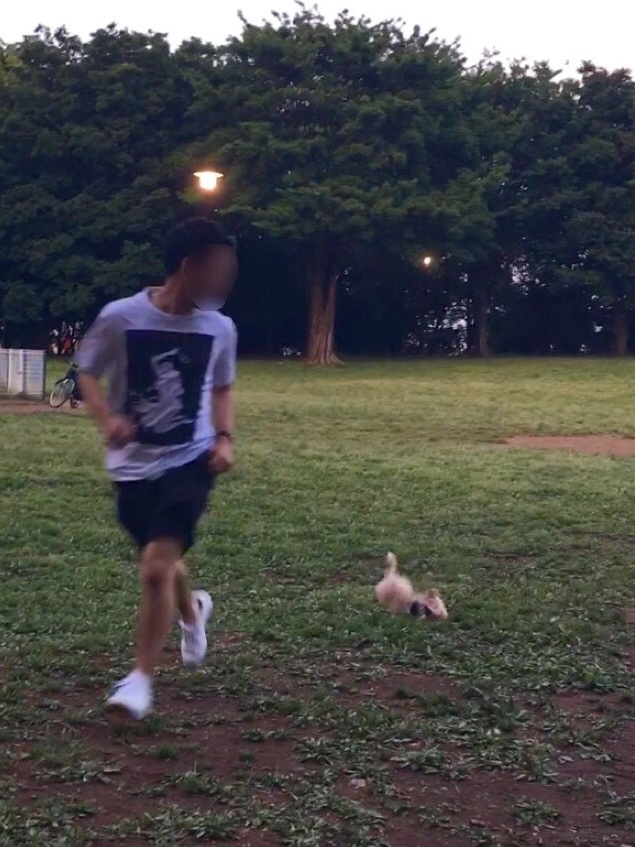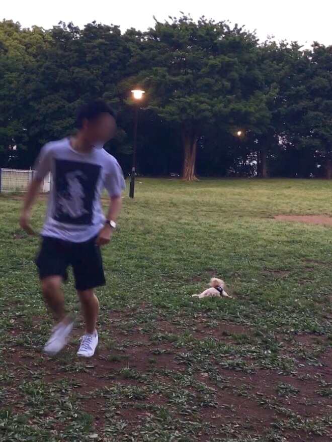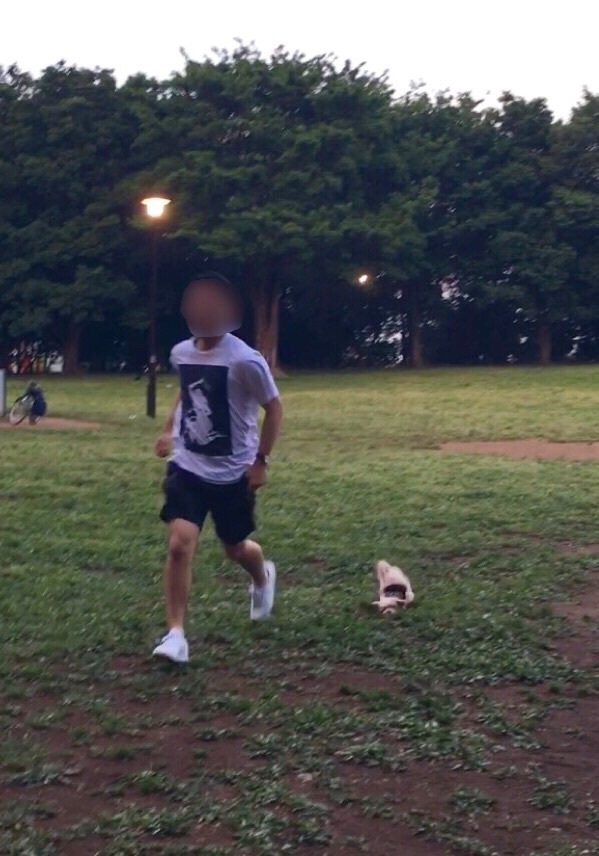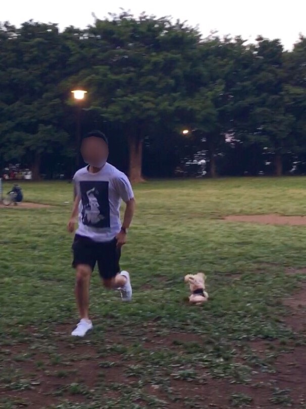 彼に一生懸命ついて走って